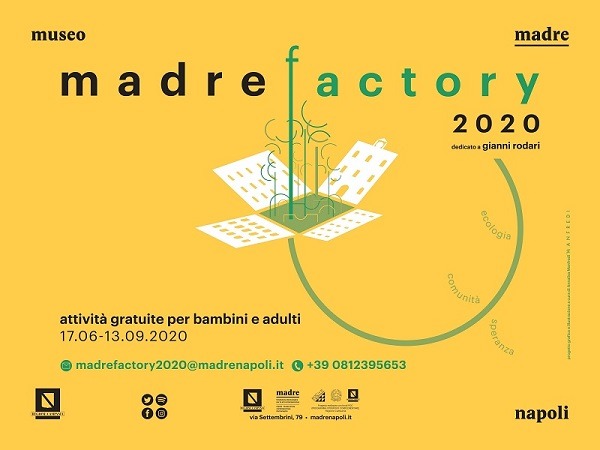 “Noi dobbiamo proporci il compito di salvare nel cittadino di domani, nell’uomo la cui formazione dipende da noi, quelle energie vitali, quegli slanci attivi, quell’intensità di passioni e di forza morale che il bambino mette nei suoi giochi e molto meno, purtroppo (ma non è colpa sua), nei compiti di scuola, nei doveri in cui via via s’imbatte”: così scriveva Gianni Rodari nel 1962 a Ferrara a proposito della sua attività letteraria. Partendo da quest’insegnamento lasciatoci da uno tra i più grandi scrittori italiani per bambini, in occasione del centenario della sua nascita, il Madre – Museo di Arte contemporanea Donnaregina di Napoli inaugura il Madre Factory 2020, un programma di inclusione attraverso l’arte, giunto alla sua seconda edizione. Ideato da Laura Valente e incentrato sui temi della solidarietà e della sensibilizzazione ai temi dell’ecologia e della sostenibilità, si rivolge ad adulti e bambini per i quali dal 17 giugno al 13 settembre saranno organizzati laboratori e workshop gratuiti, realizzati nell’ambito di Madre per il Sociale e dedicati quest’anno a Gianni Rodari e alla sua Grammatica della Fantasia.