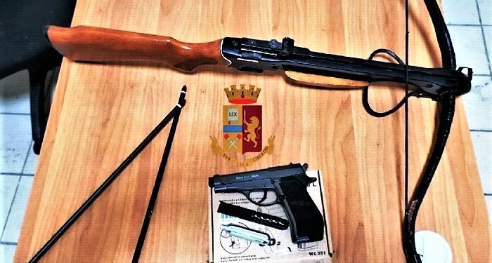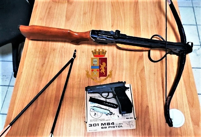 Raccolte tutte le testimonianze del caso, gli agenti del commissariato di Secondigliano, ricevuto il via libera dal comando della centrale operativa, sono entrati nell’appartamento del sessantenne. Durante i controlli e le ispezioni i poliziotti hanno trovato, nascosta all’interno di un armadio, la balestra utilizzata per compiere l’aggressione corredata con tanto di due grosse frecce pronte a essere scoccate per colpire il loro eventuale bersaglio. Gli agenti hanno rinvenuto anche la pistola, rivelatasi essere una replica fedele al modello originale completa di caricatore con dodici pallini in ferro. Il reo, G. S., già con precedenti di polizia a suo carico, è stato così bloccato e denunciato dagli agenti di polizia: l’uomo dovrà altresì rispondere delle accuse di minacce aggravate e porto di armi e di oggetti atti a offendere. Le armi ritrovate nella sua residenza sono state conseguentemente poste sotto sequestro dalla polizia.