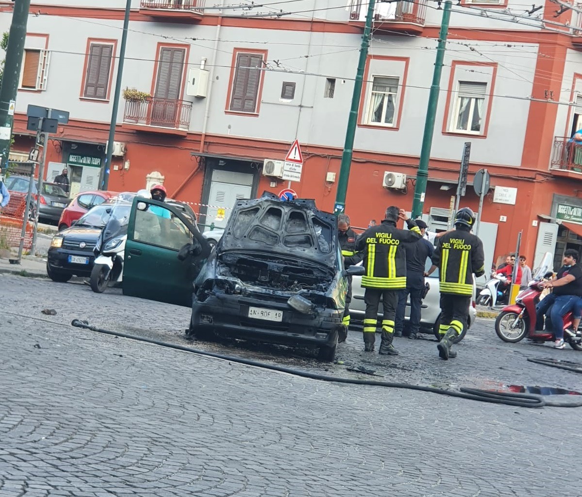 Paura questa sera in piazza Carlo III a Napoli: intorno alle 19 una Punto di colore verde ha improvvisamente preso fuoco per autocombustione mentre stava percorrendo l’importante slargo cittadino su cui si affaccia lo storico e imponente Palazzo Fuga, meglio noto come Albergo dei poveri. L’auto stava proseguendo in direzione via Foria, quando chi la guidava ha visto uscire le fiamme dal motore. Immediatamente il conducente si è fermato ed è sceso dalla vettura, cercando di spegnere l’incendio. Insieme a lui c’erano altre due persone anziane, visibilmente impaurite per l’accaduto: nessuno dei tre, fortunatamente, ha riportato ferite. Tempestivo, comunque, l’intervento dei vigili del fuoco, i quali hanno provveduto a spegnere le fiamme che hanno coinvolto anche alcune buste della spesa presenti all’interno dell’autovettura. Naturalmente in zona il traffico è andato in tilt, con i carabinieri e la polizia municipale che hanno avuto il loro da fare per far defluire in maniera ordinata auto e mezzi pubblici bloccati dall’ingorgo.