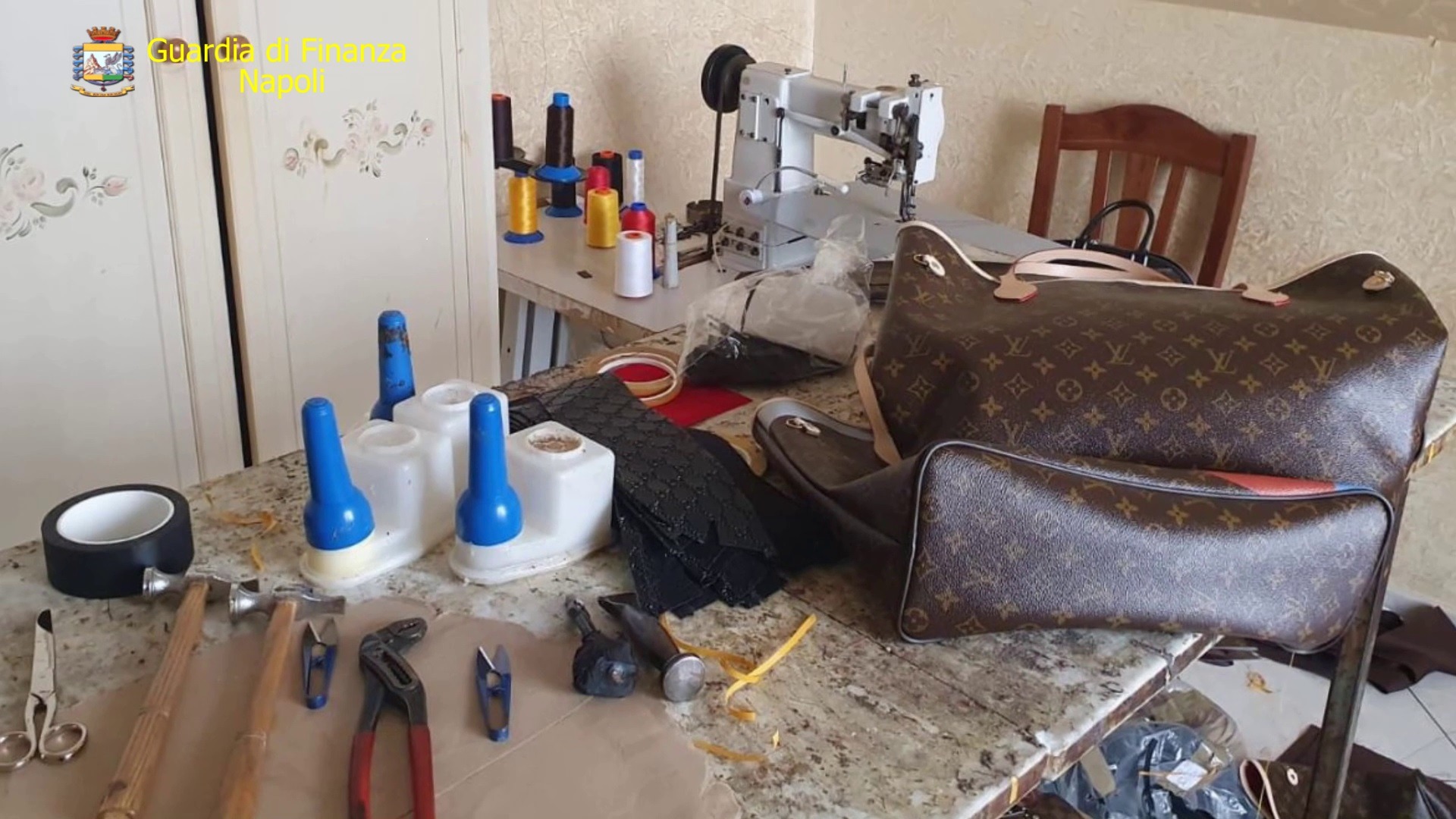 Napoli, scoperta “fabbrica del falso”: sequestrati 7.000 articoli contraffatti e 100 macchinari (Video)
