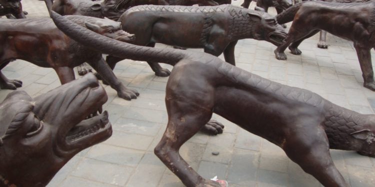 È il caso di Wolves coming, l’installazione dell’artista contemporaneo Liu Ruowang che aveva riempito lo spazio antistante palazzo San Giacomo, in piazza Municipio, con delle grandi sculture in ferro ritraenti un branco di lupi nell’atto di accerchiare un cacciatore. I vandali, agendo con ogni probabilità col favore delle tenebre, hanno manomesso la creazione dello scultore cinese spostando le pesanti statue in maniera tale da alterare il significato originale dell’opera. Quanti si sono trovati a transitare per la piazza nel corso della mattinata, hanno trovato alcuni dei lupi col muso rivolto verso l’esterno del gruppo scultoreo e altri disposti in una specie di grottesca fila indiana. Il muso di uno degli animali, inoltre, è risultato essere stato imbrattato con della vernice di colore rosso.