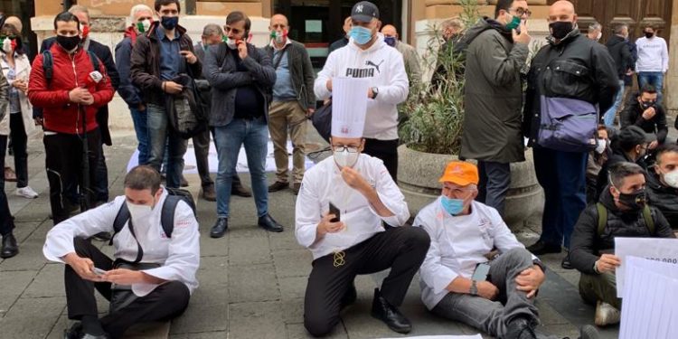 I dati comunicati nel corso della protesta parlano di novemila aziende a rischio chiusura, un miliardo e mezzo di fatturato perso, sessantamila lavoratori in bilico. “Abbiamo voluto organizzare un’azione simbolica ma molto significativa – spiega il presidente Sindaco – per ribadire la nostra contrarietà al provvedimento del Governo che anticipa alle 18 la chiusura dei locali. Una decisione che, a nostro avviso, non fa altro che penalizzare ulteriormente un settore già fortemente in difficoltà. Salvaguardare la salute pubblica è giusto, ma non si può distruggere il tessuto imprenditoriale di un Paese con misure che peraltro non contribuiranno a ridurre il numero dei contagi. I riflettori sono ora puntati sul decreto Ristori con la speranza che i contributi garantiti dal Governo siano reali e tempestivi così da scongiurare chiusure e fallimenti. Difficile, infatti, per i ristoratori resistere e sopravvivere in queste condizioni. Dispiace dover constatare, però, che al momento non siano stati previsti aiuti economici per tutti gli altri commercianti che, pur essendo ancora aperti, stanno di fatto subendo un contraccolpo economico notevole per le limitazioni imposte a quelle attività costrette a chiudere o a ridurre gli orari di lavoro. Mi auguro che il Governo percepisca il disagio di questi lavoratori e decida di tornare sui suoi passi o almeno di rimodulare i provvedimenti“.