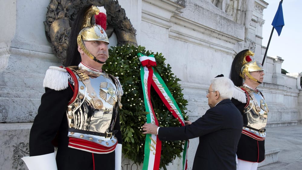 La deposizione di una corona d’alloro da parte del Presidente della Repubblica Sergio Mattarella all’Altare della Patria
