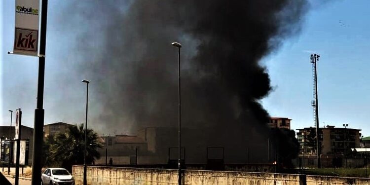 Orta di Atella, in fiamme il campo sportivo: nube tossica sulla città