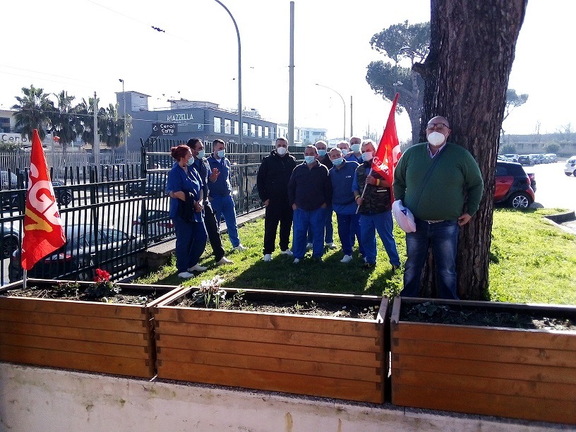 I lavoratori delle ditte di pulizia Cm service e Gsi si sono resi protagonisti, questa mattina, di un sit-in davanti all’ospedale Moscati di Aversa. Circa quaranta operatori hanno, infatti, incrociato le braccia per protestare contro la politica aziendale di riduzione dell’orario di lavoro da sei ore e quaranta minuti a quattro ore giornaliere, con conseguente diminuzione dello stipendio e peggioramento del servizio di pulizia. “I lavoratori sono stati costretti a una condizione da fame – ha spiegato Michele De Luca del Sindacato generale di base – che ha come logico effetto l’impossibilità di operare al meglio. Vorrei capire come un lavoratore possa pulire un intero reparto dell’ospedale in sole quattro ore. Forse a qualcuno sfugge che siamo in piena emergenza Covid e oltre alla ‘normale’ pulizia, c’è bisogno di una disinfettazione precisa e, oserei dire, maniacale di stanze, oggetti e arredi. Chiediamo, quindi, di ripristinare il tempo pieno contrattuale agli operatori che si sono visti diminuire il proprio orario di lavoro. Al momento dichiariamo lo stato di agitazione, ma se non ci saranno novità nei prossimi giorni siamo pronti allo sciopero”. De Luca ha lamentato anche un’incongruenza che in questi mesi non è passata inosservata agli occhi del sindacato, cioè che “mentre le ditte chiedevano sacrifici ai lavoratori con il contratto di solidarietà, le stesse provvedevano ad assumere altro personale. Non c’è coerenza in questa scelta, perché, come prima cosa, avrebbero dovuto aumentare l’orario dei lavoratori che già erano in servizio. Una decisione che chissà quali sotterfugi nasconde. Inoltre, per ovviare alla mancanza di personale, che comunque persiste ad Aversa, hanno spostato alcuni lavoratori da altre strutture e distretti sanitari dell’Asl di Caserta, riducendo l’organico in queste ultime”.