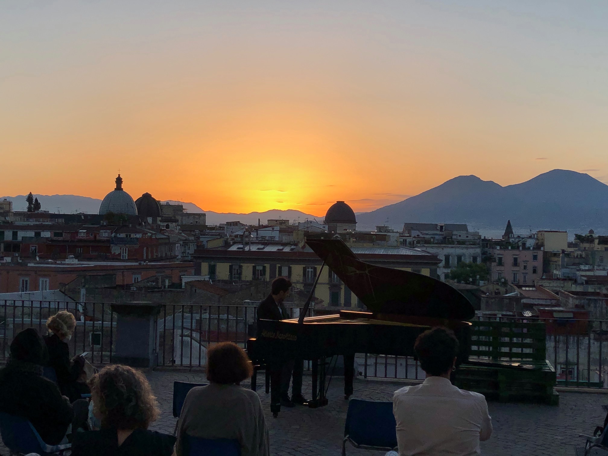 S’è aperta stamattina, col suggestivo concerto all’alba di Lorenzo Campese sul tetto della Fondazione Morra – Museo Nitsch, l’edizione 2020 di Piano City Napoli, la grande kermesse musicale interamente dedicata al pianoforte, annullata a marzo a causa della pandemia da Covid-19 e riprogrammata da oggi al 13 settembre con l’emblematico sottotitolo Napoli al pianoforte. Durante i sette giorni del festival, invece dei quattro originariamente previsti, si svolgeranno in giro per la città ben 145 eventi pianistici, ambientati in trentadue location differenti. La manifestazione è nata da un’idea del pianista tedesco Andreas Kern, che organizzò a Berlino nel 2010 la prima edizione, poi diventata un format replicato in molte altre città. A Napoli, Piano City è approdata nel 2013, grazie all’iniziativa e al sostegno della storica dittaAlberto Napolitano Pianoforti di piazza Carità. L’edizione di quest’anno è finanziata e promossa dalla Regione Campania, col supporto della Scabec nell’ambito del progetto Creator Vesevo. In cammino tra le gemme Unesco da Napoli a Pompei, organizzata dall’assessorato alla cultura e al turismo del Comune di Napoli, dall’associazione NapoliPiano e dalla Alberto Napolitano Pianoforti, con la direzione artistica di Dario Candela per la musica classica e Francesco D’Errico per il jazz.