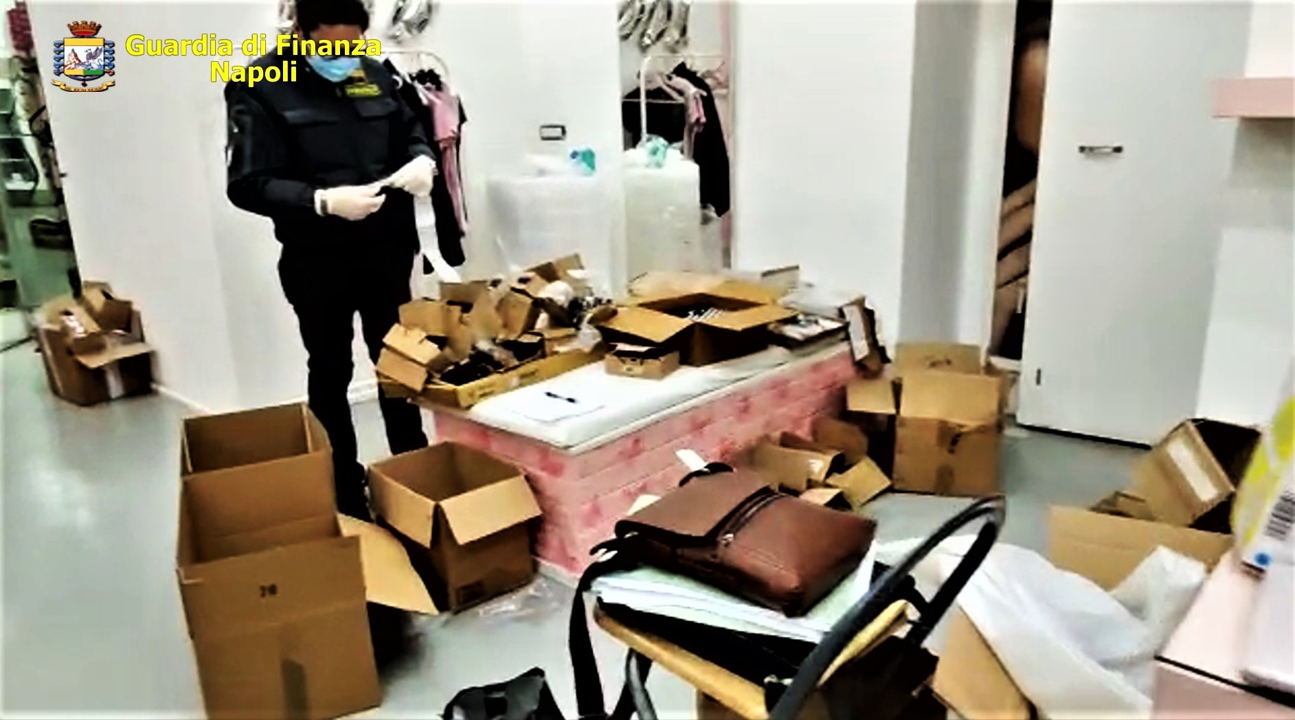 Nel corso dei controlli, i militari hanno scoperto che nel retrobottega del negozio era stato allestito un vero e proprio mini-laboratorio dove venivano etichettati e confezionati i prodotti contraffatti, pronti per essere messi in commercio. Nello specifico, i finanzieri hanno posto sotto sequestro, per violazioni penali, 11.600 articoli non a norma. Tra questi c’erano soprattutto mascherine di protezione per bambini con immagini riconducibili al Calcio Napoli, a personaggi dei cartoni animati della Walt Disney e di supereroi della Marvel, oltre a diverse etichette adesive della Swarovski, nonché 65 litri di diluenti, additivi e prodotti chimici potenzialmente pericolosi per la salute e utilizzati per la cosmesi.
