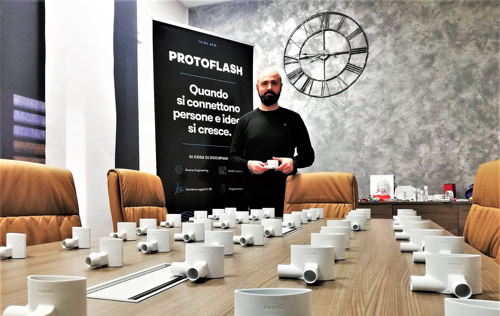 Ricerca, sviluppo e innovazione sono i cardini dell’industria del futuro ed è nel solco di questa rivoluzione incentrata sull’automazione tecnologica e sulla smart manufacturing che si inserisce la ProtoFlash Concept Store, azienda startup campana specializzata nella progettazione e nella produzione di nuovi materiali e del loro studio nei rispettivi campi di applicazione. L’impresa, fondata dal giovane ingegnere aversano Manlio Mascolo, è specializzata in reverse engineering, ossia nell’analisi delle funzioni, degli impieghi, dell’aspetto progettuale e geometrico nonché nello sviluppo dei materiali. L’intera filiera produttiva si avvale dei processi di additive manufacturing, più comunemente noti come stampa 3D, e ha lo scopo di fabbricare nuovi oggetti attraverso modelli computerizzati.