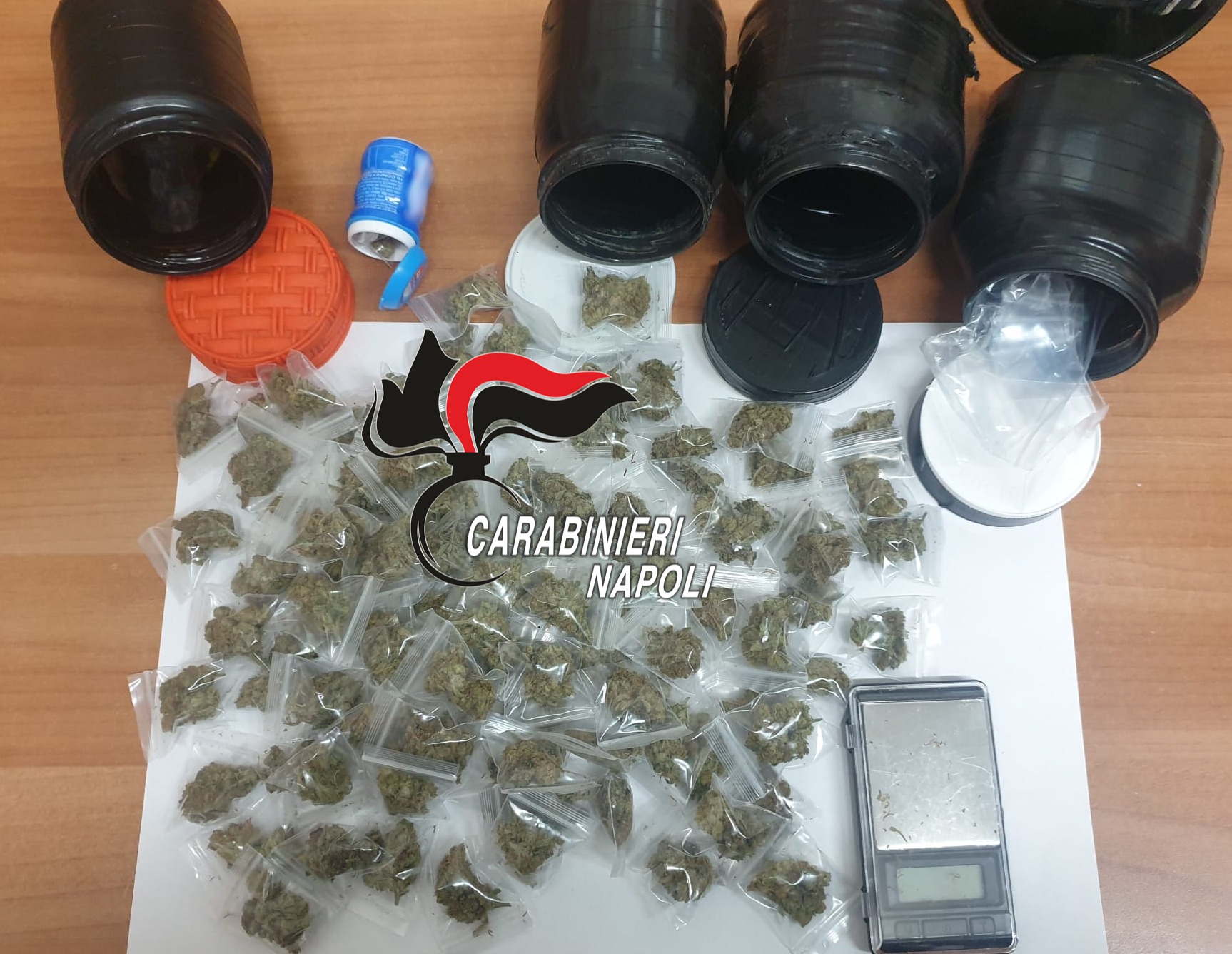 I carabinieri di Qualiano hanno arrestato per detenzione a fini di spaccio di sostanze stupefacenti A. A., ventiduenne del luogo, già noto alle forze dell’ordine. Il giovane è stato controllato dai militari dell’Arma in piazza Rosselli. Perquisito, è stato trovato in possesso di 3 bustine di marijuana. I carabinieri – che avevano precedentemente “monitorato” i movimenti del ragazzo e lo avevano visto muoversi in maniera sospetta – hanno effettuato un controllo più approfondito. Tra i cespugli sono stati rinvenuti e sequestrati 4 barattoli in vetro – avvolti interamente da nastro isolante di colore nero – al cui interno erano contenute altre 93 dosi della stessa sostanza, per un peso complessivo di 100 grammi. Trovato anche un piccolo bilancino elettronico e rinvenute numerose bustine in cellophane per il confezionamento della droga. L’arrestato è stato tradotto a Poggioreale in attesa di giudizio.