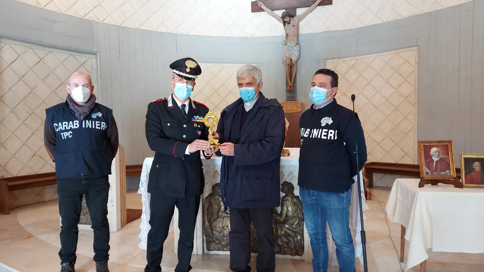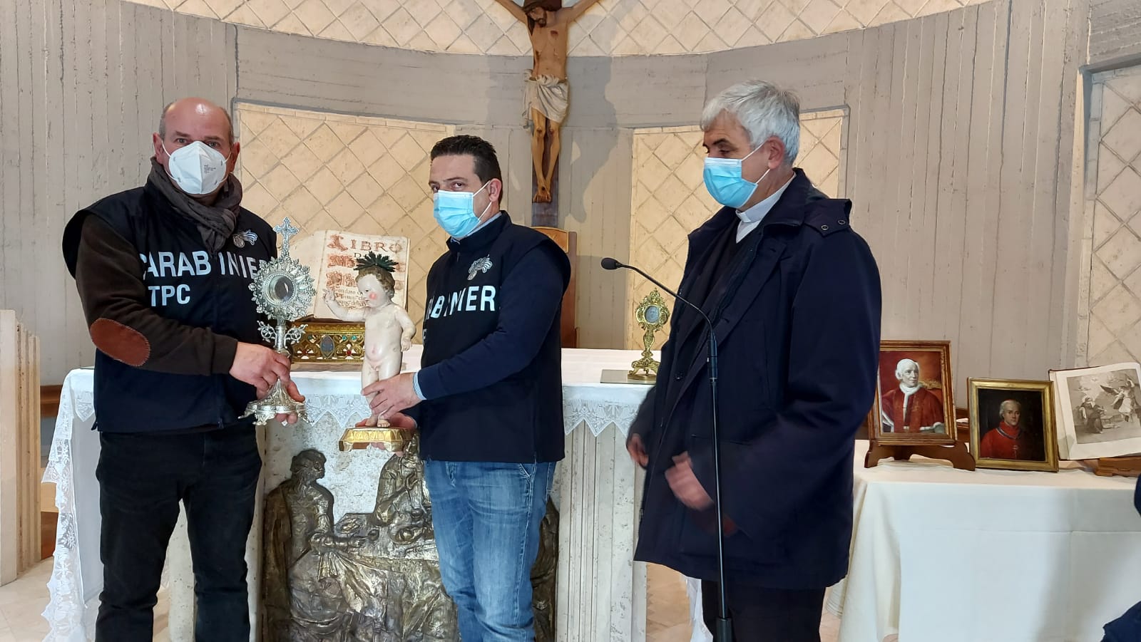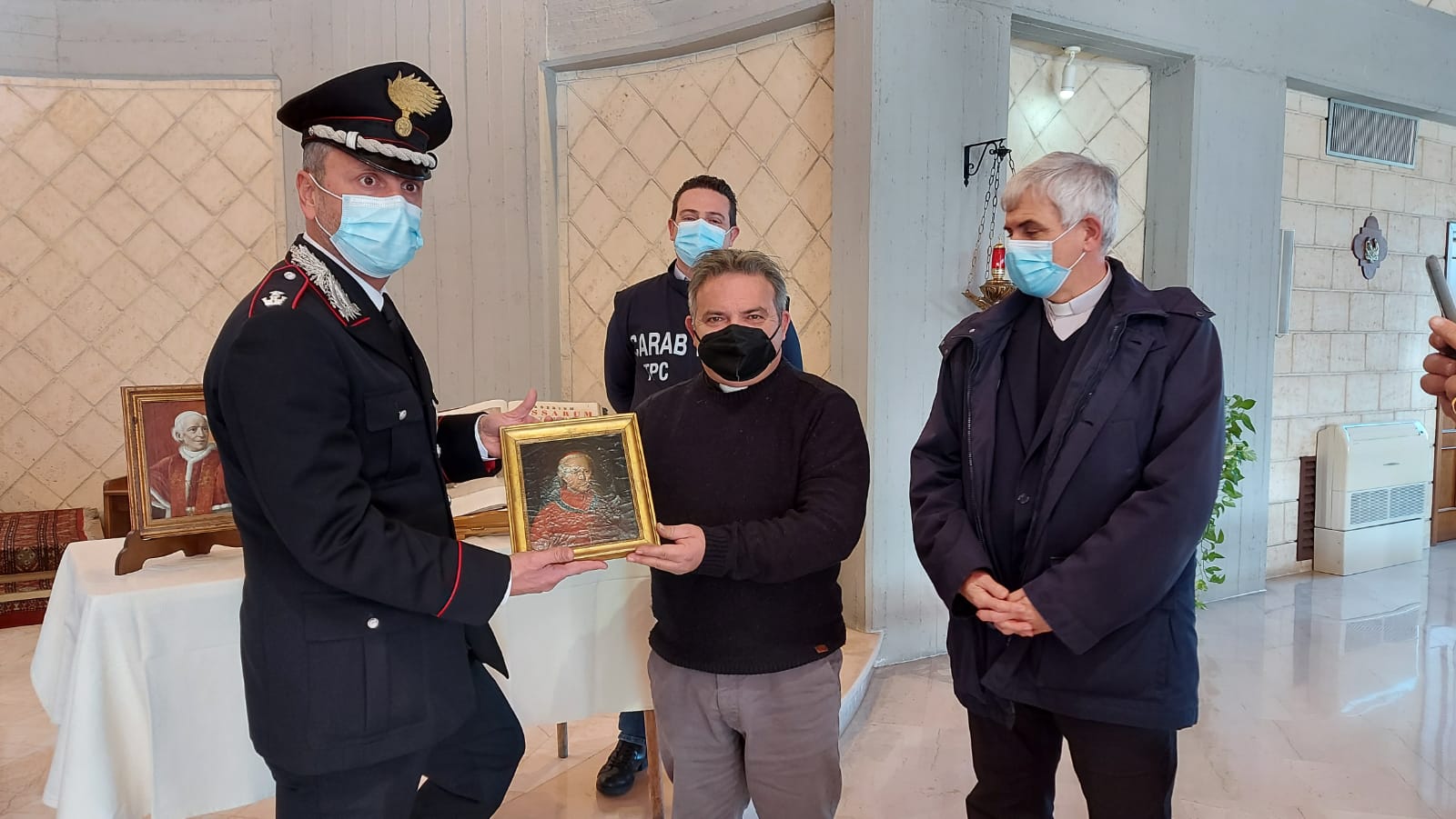 È stata una giornata importante quella appena trascorsa per le diocesi di Aversa, Capua e Teano: questa mattina, intorno alle 11.30, nella sede del seminario Sacro Cuore del Pontificio Istituto Missioni Estere di Trentola Ducenta, sono state restituite diverse opere d’arte trafugate dalle chiese nel corso degli anni passati. Il passaggio di consegne è avvenuto, formalmente, tra il comandante del nucleo per la Tutela del patrimonio culturale di Napoli, Giampaolo Brasili, e il responsabile regionale Campania Cei e direttore dell’Ufficio per i Beni culturali ecclesiastici di Aversa, monsignor Ernesto Rascato, con la presenza del vescovo di Aversa Angelo Spinillo.