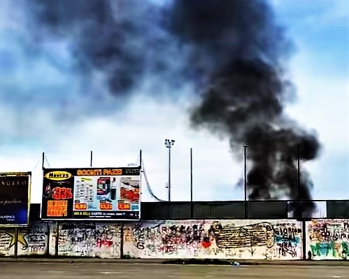 Un nuovo incendio, l’ennesimo, sarebbe scoppiato questo pomeriggio a Orta di Atella, nel cuore della Terra dei Fuochi. Ad andare in fiamme, un’altra volta, è stato il campo sportivo Don Sossio Giordano, situato in via Antonio De Curtis, a due passi dal noto e frequentato centro commerciale Fabulae. Stando alle testimonianze raccolte sul luogo dell’accaduto, alcuni loschi figuri si sarebbero intrufolati nella struttura, ormai abbandonata da anni, dando alle fiamme diversi cumuli di rifiuti che erano stati sversati a bordo campo. A prendere fuoco, però, è stato anche ciò che resta dell’erba sintetica che una volta ricopriva il terreno di gioco. Dal sito dell’incendio si è alzata una grossa coltre di fumo nero che ha reso per un po’ di tempo l’aria irrespirabile in tutta la zona. I cittadini residenti nei pressi dello stadio sono stati costretti a barricarsi in casa a causa della puzza insopportabile di plastica e di immondizia bruciata.