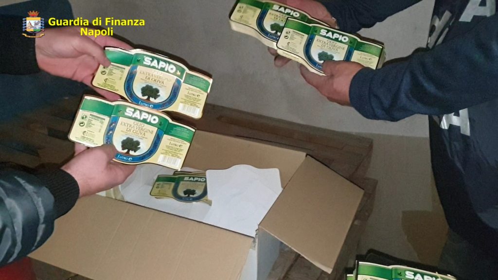 Sequestrate 774 bottiglie di champagne, 804 di Olio Sapio e di alcol etilico delle distillerie La Sorgente e Fiume, nonché 129.400 accessori per il confezionamento, fra tappi, etichette, contenitori in cartone, capsule copri-tappo in alluminio, con loghi e falsi marchi Moet & Chandon, Olio Sapio, Olio San Colombano e Made in Italy. Sequestrati anche 1.100 contrassegni di Stato per bevande alcoliche, con il logo contraffatto della Repubblica Italiana e denunciati i titolari, una cinquantacinquenne e un quarantottenne, originari di Sarno, nel Salernitano, per contraffazione e ricettazione.