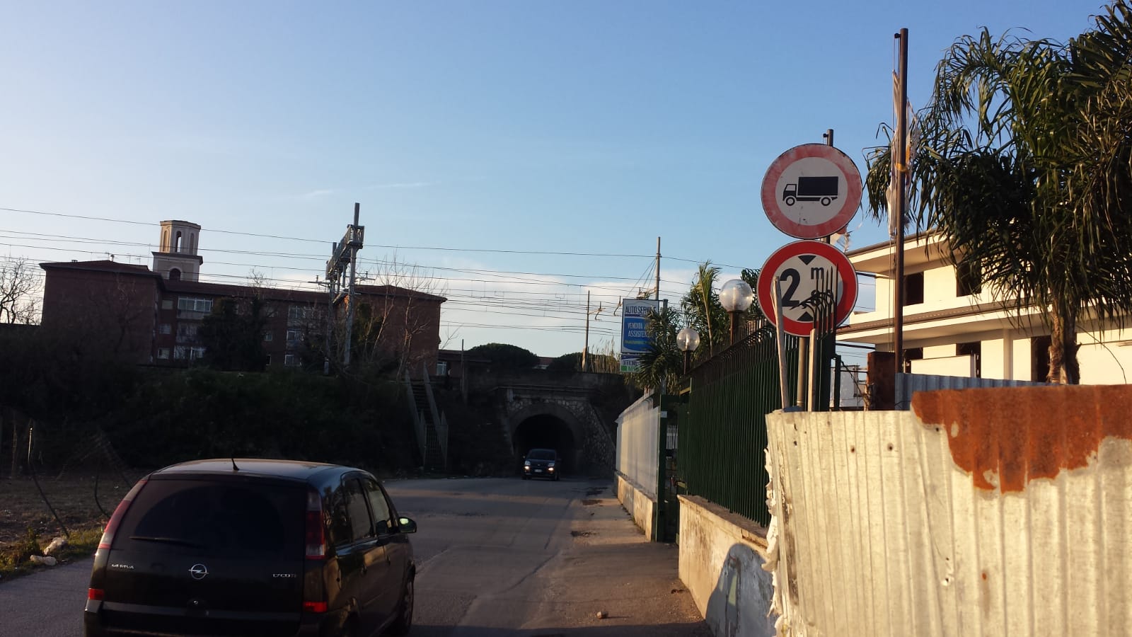 Siamo in un imbuto, una strettoia, un budello di strada al confine con Teverola che passa sotto la ferrovia. Nella piccola galleria ci entra a malapena una macchina. Se poi ci prova un furgone o, peggio, un camioncino, è la fine. Non c’è una regola, un cartello che dia la precedenza o un’indicazione, un accenno di buona creanza che permetta un flusso del traffico più lineare, più fluido, meno anarchico e nervoso.
