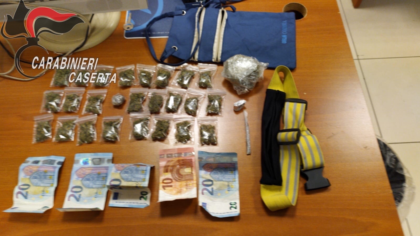 I tre sono stati notati mentre si aggiravano con fare sospetto all’interno della villa comunale di San Nicola la Strada. Subito fermati e identificati dai militari, sono stati trovati in possesso di 30 dosi di marijuana, per un peso complessivo di circa 60 grammi, 2 dosi di hashish del peso complessivo di 4 grammi, nonché di 70 euro in contati, probabile ricavo dell’attività illecita.