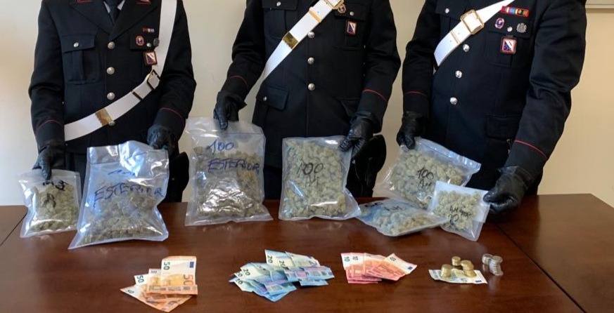 I carabinieri della tenenza di Sant’Antimo erano di pattuglia tra le strade del Comune napoletano in una zona a ridosso della piazza principale quando, ad un certo punto, hanno notato due persone a bordo di un ciclomotore. Le due persone stavano percorrendo contromano via Raffaello e, appena notata la presenza della pattuglia dei carabinieri, hanno abbandonato il veicolo in fretta e furia e hanno tentato la fuga a piedi. Durante l’inseguimento, i carabinieri hanno notato che i due fuggitivi hanno lanciato, tra gli arbusti presenti nella zona, un involucro sospetto. A seguito degli accertamenti, l’involucro è risultato essere un contenitore per il trasporto di 7 confezioni di marijuana, che nel complesso andavano a formare un peso di 500 grammi di stupefacenti. Nelle loro tasche, inoltre, è stata anche trovata la somma di 478 euro in contanti, ritenuti provento illecito dell’attività di spaccio di sostanze stupefacenti.