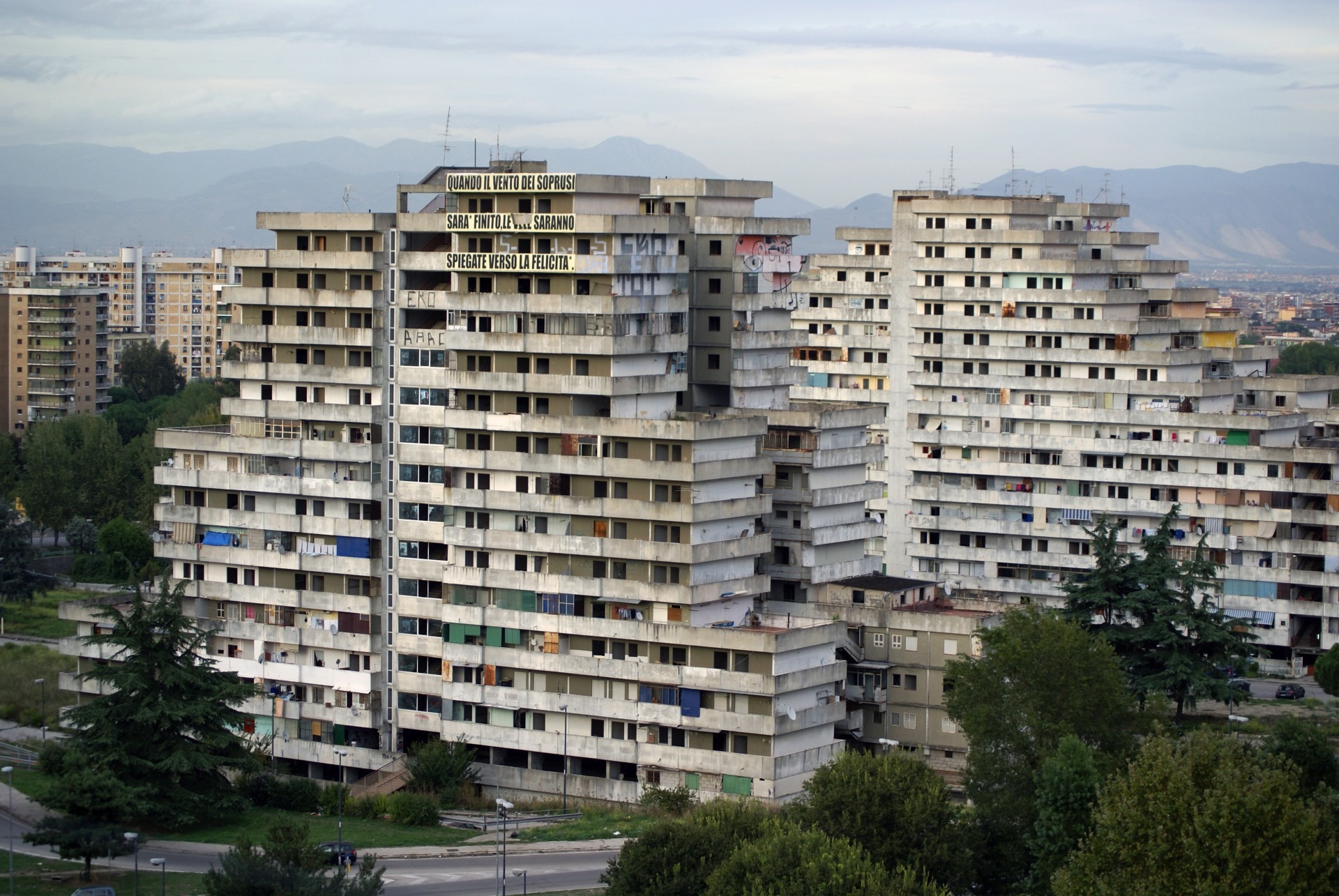 Fino a qualche anno fa, quando i muri degli edifici non erano ancora completamente scrostati, le Vele nascondevano alcune delle tante piazze di spaccio, quelle delle file di tossici a cielo aperto che si vedono anche nella serie Tv Gomorra. Oggi, davanti ai nostri occhi, una realtà completamente diversa. Scampia è quasi deserta quando non si incontrano troupe televisive e cinematografiche, che hanno scelto questo luogo come set naturale per fiction e film di successo.