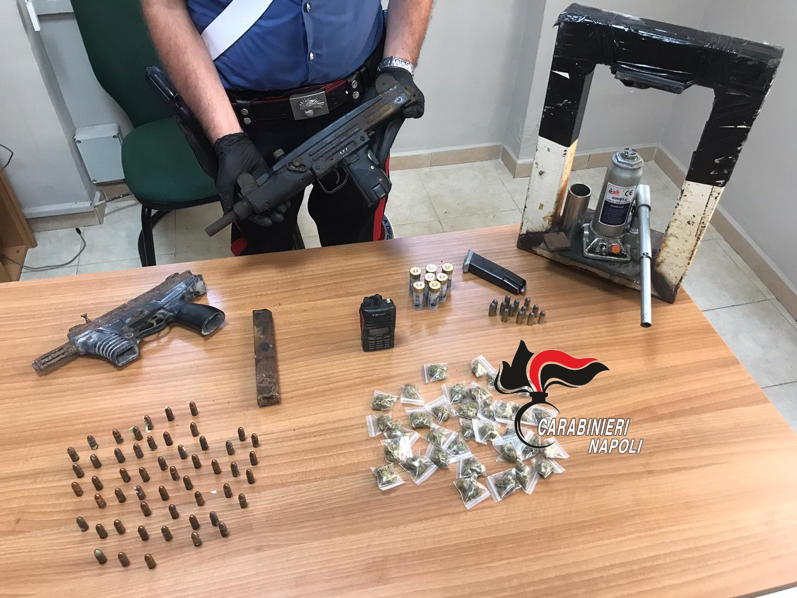 I carabinieri hanno proceduto all’abbattimento di ostacoli fissi presenti sul posto, per poi rinvenire e sequestrare una pistola mitragliatrice croata modello Imi-Uzi con un caricatore: l’arma era perfettamente funzionante. Sequestrata anche un’arma automatica artigianale con serbatoio e 52 cartucce calibro 9×21. I controlli non sono terminati e, durante le operazioni, sono state scoperti una radio-scanner simile a quella utilizzata dalle forze dell’ordine, priva di antenna ma comunque funzionante e un ordigno esplosivo pirotecnico sui generis dal peso di 400 grammi. Gli uomini dell’Arma e i vigili del fuoco sono successivamente entrati nel cuore del quadrilatero e hanno individuato un caricatore con proiettili, varie cartucce calibro 12 e trenta dosi di marijuana. Sequestrata anche una pressa completa per il confezionamento dei pacchetti di hashish.