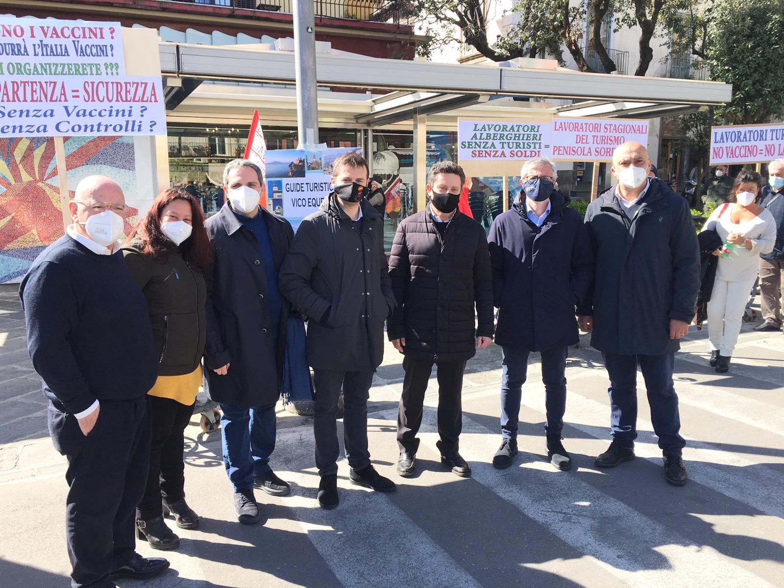 Assieme ai lavoratori, in piazza, c’erano anche i sindaci delle principali città della Penisola Sorrentina tra cui lo stesso primo cittadino di Sorrento Massimo Coppola: la fascia tricolore ha espresso la propria solidarietà a tutte le persone scese in piazza: “Come amministratori non possiamo che sostenere la protesta dei lavoratori del comparto turistico del nostro territorio.La nostra presenza, questa mattina, in piazza Tasso, testimonia ancora una volta la vicinanza al dramma economicoe sociale che tantissimi concittadini vivono. Continueremo a lavorare affinchè la situazione di centinaia di famiglie possa migliorare nel più breve tempo possibile“.