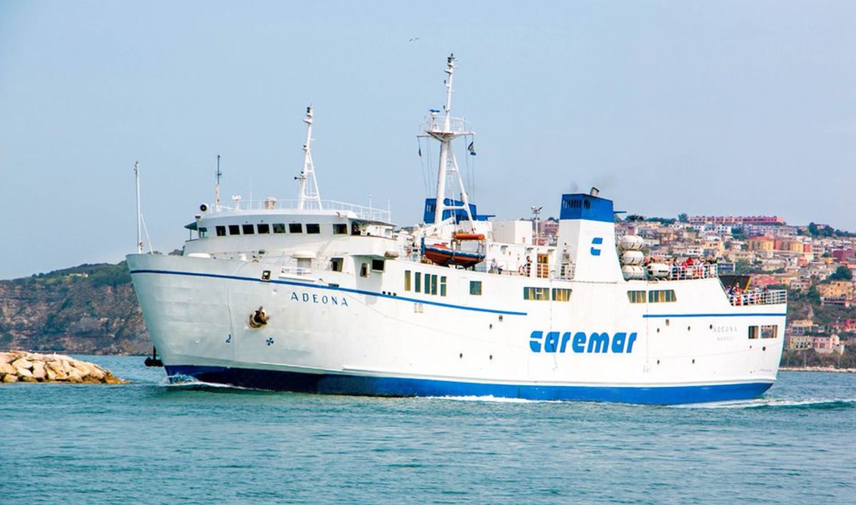 La nave Caremar il cui equipaggio ha sventato ieri sera un suicidio allertato dalla Capitaneria di Porto