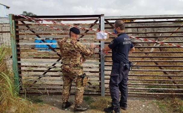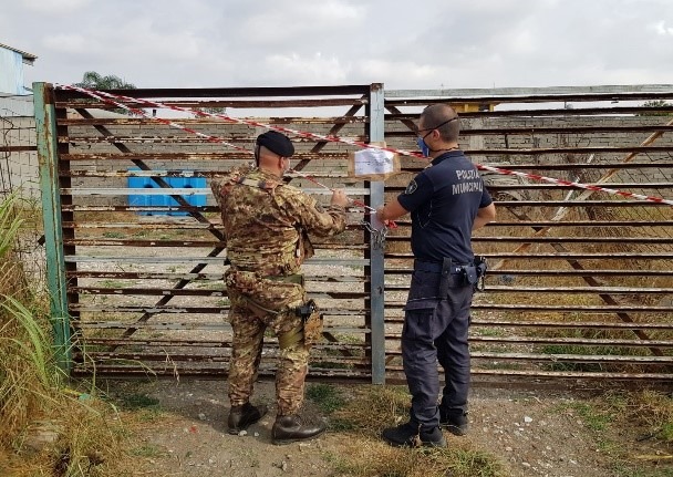 Il 25 Agosto sono entrati in azione un equipaggio dell’Esercito Italiano congiuntamente a una pattuglia della Polizia Municipale di Giugliano in Campania (Na), effettuavano il controllo di una falegnameria abusiva, e ne sequestravano l’area di circa 1.200 Mq con deposito di rifiuti speciali e non, contenente guaina, materiali di risulta per circa 3 Mc.