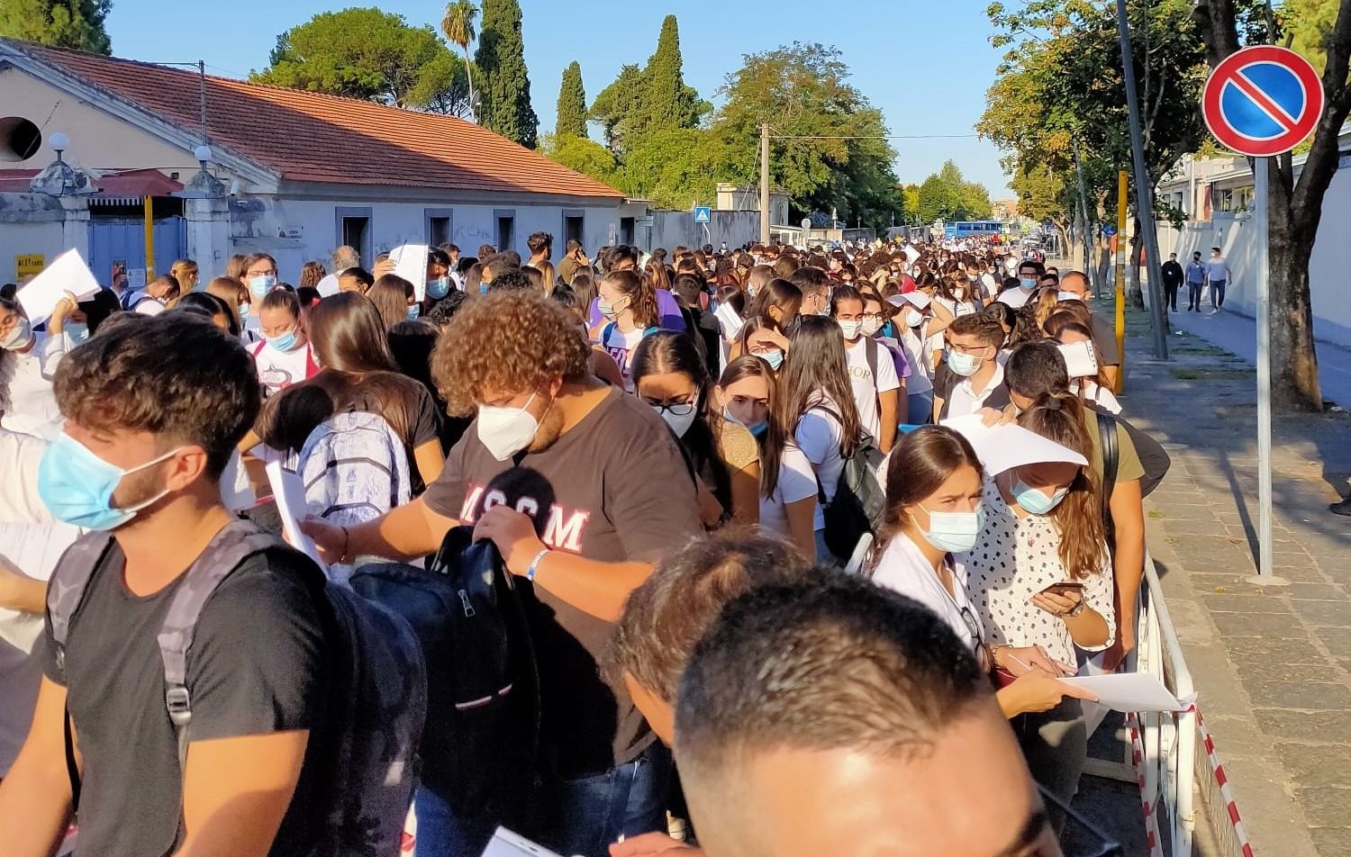 Lunghe code, distanze interpersonali non sempre rispettate ai cancelli. Si sono svolti oggi, non senza qualche problema con le norme anti-contagio, i test per l’accesso alle facoltà di medicina e chirurgia delle università campane. La prova, inizialmente prevista per il primo settembre, ha avuto luogo oggi, con due giorni di ritardo, proprio a causa dell’emergenza sanitaria in corso. I candidati, muniti nella stragrande maggioranza dei casi di mascherina chirurgica correttamente indossata, si sono presentati questa mattina alle 8 a Napoli, Caserta, Salerno e Benevento per sostenere il temuto test di accesso. Nutrite folle all’ingresso dei plessi sono stati registrati a Napoli e Caserta: qui le prove sono state tenute, rispettivamente, nel complesso di Monte Sant’Angelo, dove sono state impiegate ben 70 aule, e presso la reggia borbonica, nella sede dell’Aeronautica Militare.
