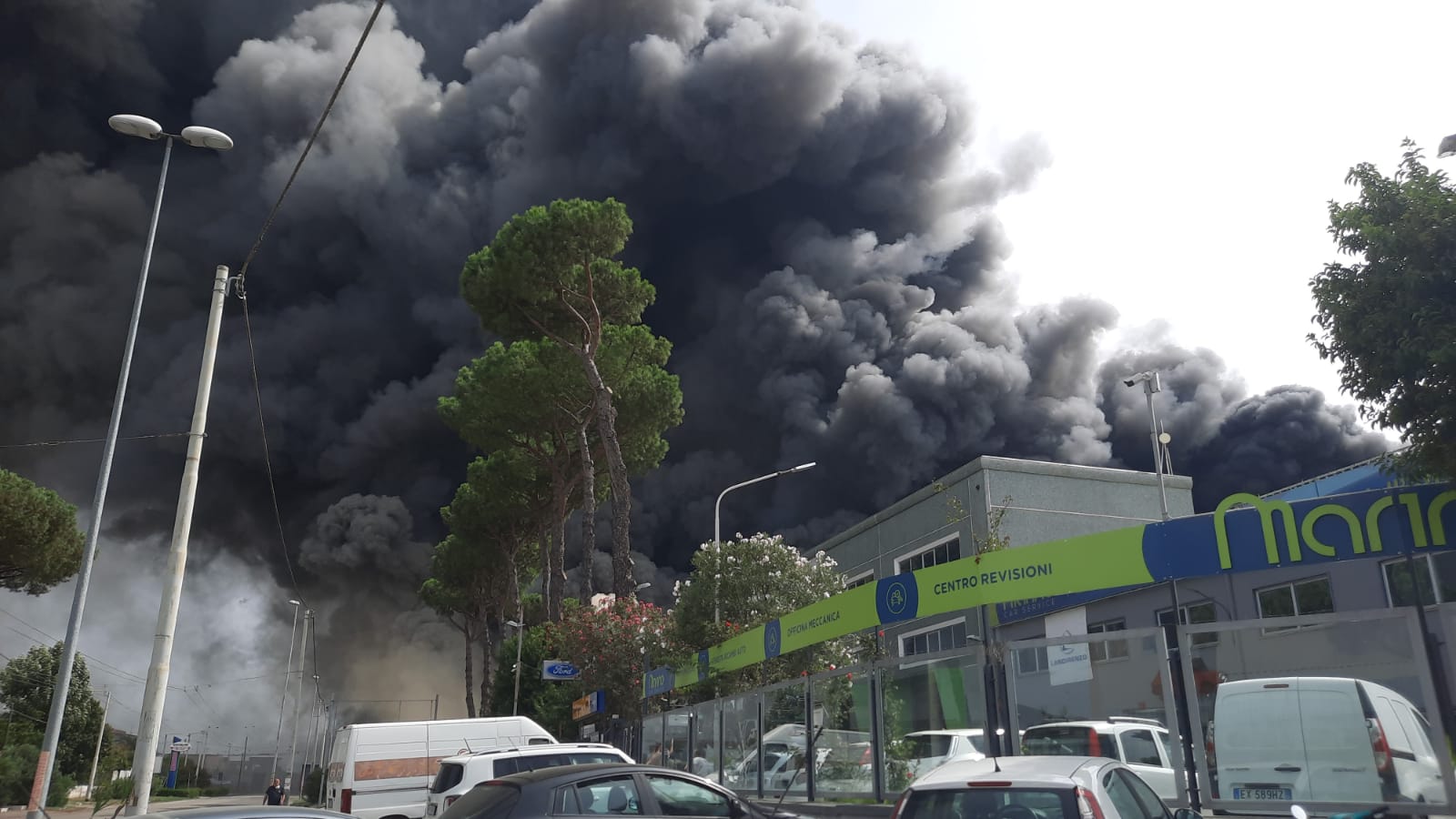 Un incendio di enormi proporzioni è scoppiato poco fa nella zona industriale di Teverola, nell’hinterland casertano. Come si può ben vedere dalle foto e dal video girato sul posto, un’enorme e spaventosa nube tossica si è alzata minacciosa in cielo, oscurando la luce del sole e terrorizzando i cittadini residenti nell’area i quali sono stati costretti a barricarsi nelle proprie abitazioni per non respirare le esalazioni nocive.