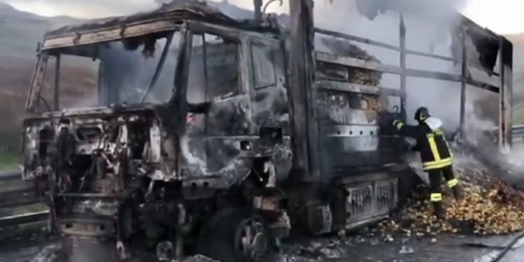 È stata una mattinata di paura per il conducente di un tir che trasportava frutta e ortaggi. L’autocarro si trovava sull’autostrada A-16 Napoli-Canosa, al km 101, e andava in direzione Cerignola, nel territorio dell’Avellinese. Il mezzo, che in quel momento si trovava nella zona di Vallata, si è incendiato improvvisamente. Le fiamme hanno distrutto buona parte del veicolo, ma il camionista è riuscito a balzare fuori in tempo. Verso le 6 sono intervenuti i vigili del fuoco di Avellino che, dopo aver messo in sicurezza la zona e il conducente, sono riusciti a spegnere l’incendio.