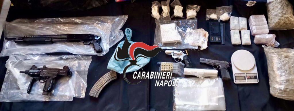 Nel corso delle perquisizioni, è stato trovato un borsone all’interno di uno stabile abbandonato: al suo interno una mitraglietta Uzi con munizioni, un fucile a pompa carico, due pistole (una Browning e una 357 Magnum), 40 cartucce di vario calibro, un chilo di cocaina, uno di hashish, un chilo e mezzo di marijuana, bilancini e materiale per il confezionamento della droga. Le armi, tutte sequestrate, saranno sottoposte ad analisi balistiche per accertarne l’eventuale utilizzo in episodi criminali.