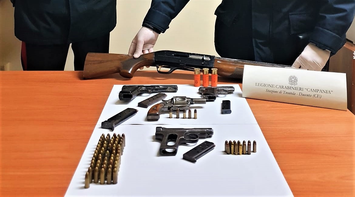 Durante le perquisizioni effettuate presso l’abitazione di R.S., trentanovenne originario di Trentola Ducenta, i carabinieri hanno infatti trovato diverse armi da fuoco tra cui un pericolosissimo fucile a canne mozze, risultato essere rubato, e quattro pistole clandestine prive di matricola e mai censite di diverso calibro e dimensioni, oltre a diverse cartucce pronte per l’occorrenza. Il possessore dell’armamento illegale non ha saputo giustificare né il possesso, né l’utilizzo di tali armi ai carabinieri ed è stato pertanto posto in regime di custodia precautelare presso la propria residenza in attesa dell’interrogatorio di convalida da parte del Giudice delle indagini preliminari, cui dovrà rispondere delle accuse di ricettazione e di detenzione illegale di armi clandestine. Gli inquirenti sono riusciti a risalire all’uomo in seguito alle denunce esposte da un cittadino extracomunitario residente a San Marcellino, che aveva subito, in seguito ad alcune questioni economiche irrisolte, violenti percosse e minacce effettuate con l’utilizzo delle armi sequestrate. Il giovane aveva subito infatti minacce di morte qualora non avesse provveduto a risolvere le questioni economiche che lo vedevano coinvolto.