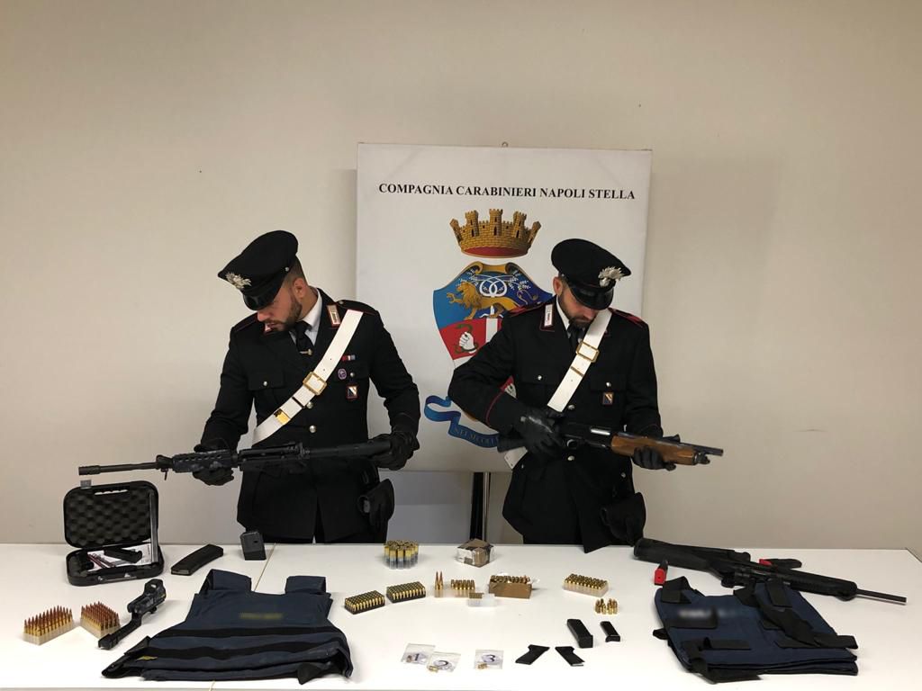 All’indomani dell’omicidio del 44enne Stefano Bocchetti, i carabinieri della compagnia Stella di Napoli hanno intensificato i controlli e le perquisizioni nel quartiere napoletano di Miano. In un locale di Via Parise – poco distante dalla sala giochi in cui ha perso la vita il 44enne – i militari hanno rinvenuto un arsenale con 2 fucili mitragliatori automatici (un M4 Colt e un Beretta CX4 con mirino di precisione), un fucile a pompa con calciolo e canna mozzati, 400 munizioni di vario calibro, due giubbotti anti proiettile, due caschi, caricatori e componenti di armi.