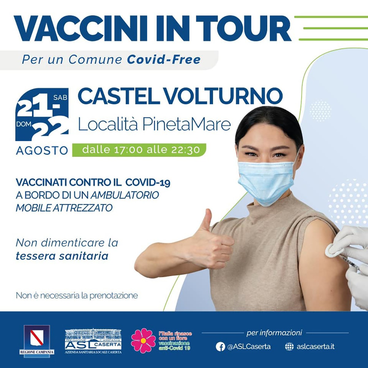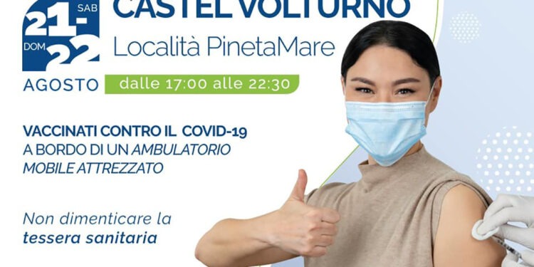 È prevista per il 20 e 21 agosto la presenza del camper vaccinale sul territorio di Castel Volturno. L’ambulatorio mobile sarà fermo sabato e domenica in località Pinetamare. L’orario in cui è possibile vaccinarsi nei due giorni della tappa castellana del tour è dalle ore 17:00 alle ore 22:30. La vaccinazione sarà riservata a tutti gli over 12 e saranno somministrate solo le prime dosi di vaccino. A differenza degli open day organizzati fino ad ora questa l’opportunità di vaccinarsi sarà aperta a chiunque si presenti al camper, anche se non residente a Castel Volturno e senza alcun obbligo di prenotazione.