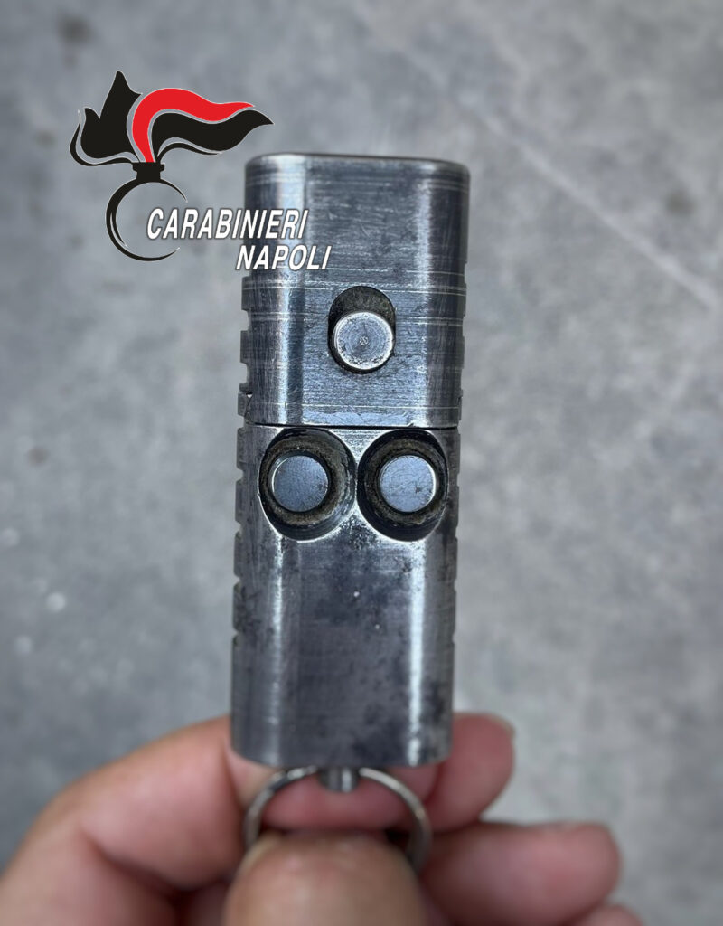 L’insolita arma, una novità nel già ampio arsenale sequestrato negli anni dai militari del Comando Provinciale di Napoli, era poggiata sul comodino dell’abitazione dell’uomo, situata a Villaricca. Equipaggiata con due cartucce pronte all’uso, poteva essere attivata premendo semplicemente dei pulsanti posti sul dorso del dispositivo. Grazie alla sua forma compatta e alla presenza di un anello, la pistola poteva essere confusa facilmente con un comune mazzo di chiavi. Il 50enne proprietario dell’abitazione è stato arrestato con l’accusa di detenzione di armi clandestine. Ma non è tutto: durante la perquisizione i Carabinieri della sezione operativa di Giugliano hanno rinvenuto anche quattro fucili da caccia, una pistola Walther e 57 munizioni di vario calibro.