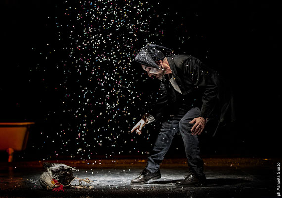 Siamo nel cuore dell’atto V, scena I. Mentre i becchini stanno scavando la fossa per Ophelia, lasciatasi annegare in un corso d’acqua per il precipitare degli eventi alla corte di Elsinore, emergono dal sottosuolo i resti che un tempo appartennero a Yorick. Ed è esattamente a questo punto della tragedia shakespeariana che la rappresentazione teatrale di Setti prende forma, restituendo a quelle ossa senza vita un’anima e un corpo. Risvegliato dal lungo sonno, il “buffone” di corte, assiste dal sottosuolo allo spettacolo sull’ineluttabilità dell’esistenza che si sta svolgendo sopra di lui: e se la morte non fosse altro che un punto di vista differente sulla follia della vita? Un punto di vista che nessuno tra i vivi potrebbe mai assumere, ed è proprio qui che risiede la genialità dell’opera.